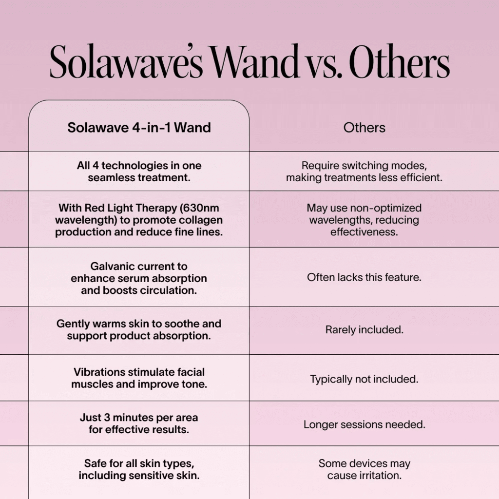 • Red Light Therapy to boost collagen • Therapeutic warmth for de-puffing • Galvanic current for deep serum absorption • Vibration massage with rotating head